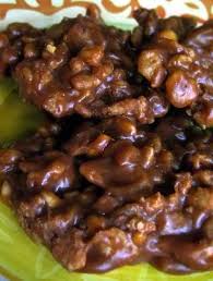 Press each cookie and refrigerate until firm. Now make the cookies by mixing butter milk cocoa powder and sugar in a sauce pan and bringing the mixture to boil. Stir in rice krispies until coated.