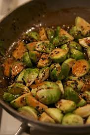 Peel off the outer leaves of the brussels sprouts. Roast cut side down on a baking sheet at 450 until caramelized. Lightly drizzle toasted sesame seed oil or teriyaki sauce over the warm sprouts.
