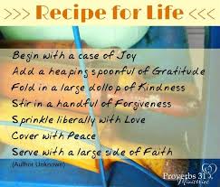 Discover and share quotes for life recipes. Recipes are by nature derivative and meant to be shared that is how they improve are changed how new ideas are formed. Recipe for happiness 2 heaping cups of patience 1 heart full of love 2 handfuls of generosity plenty of faith 1 handful of understanding dash of laughter generous sprinkle of kindness combine patience love and generosity with.