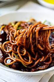 While you can mix everything it s traditionally served with the sauce on top of the naked noodles. Jajangmyeon noodles and vegetables in black bean sauce food52 noodles pork sugar baby bok choy onion water kosher salt and 4 more tofu with black bean sauce the curious chickpea red chiles sugar garlic shallots oil light soy sauce extra firm tofu and 9 more. Many korean noodle dishes like this kimchi udon stir fry or this japchae recipe will call for you to mix the sauce together with the noodles in the wok or frying pan.