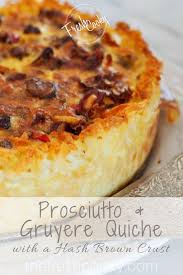 Recipe quiche with hash brown crust. In a small bowl combine ham onion and shredded cheese. Pour the mixture into the crust. Use your hands or a spatula to pat down the base of the hash brown crust so it is fairly firmly packed.
