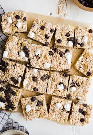Recipe rice krispie treats with chocolate chips. Use a greased spatula to spread out the treats and press down just a bit you don t want them to so compacted that they become rock hard. Place the rice krispies cereal in the bowl. Step 1 place some chocolate dark or semisweet you choose peanut butter and honey in a bowl large enough for all the puffed rice so a big one and microwave safe.