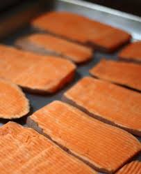 Then cut long lengthwise slices about 1 3 of an inch wide and place on a cookie sheet in a single layer. Bake until the potatoes offer no resistance when pierced with a paring knife about 1 hour. Heat sweet potato in a microwave on high until tender about 6 minutes.