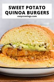 Recipe sweet potato quinoa burger. Place sweet potato spring onion lemon zest garlic ginger egg yolk and seasoning in a food processor and blend until smooth. In a bowl combine the mashed sweet potato cooked quinoa chopped kale dried thyme and garlic. Add the flesh to the bowl of a food processor.