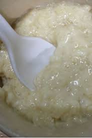 Cooked rice is combined in a double boiler with milk sugar raisins vanilla and cocoa to make this. In top half of double boiler place milk rice sugar and salt. Put first three ingredients into a pan and boil together for four minutes.